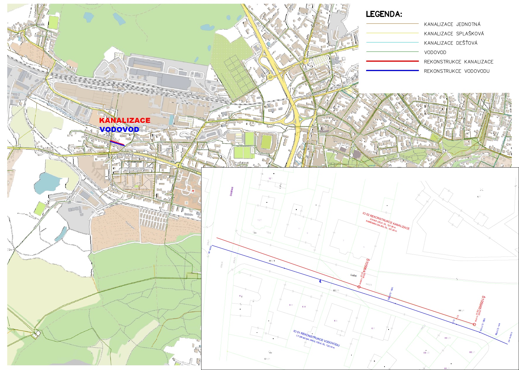 Předmětem stavby je rekonstrukce kanalizace v délce 108 metrů a vodovodu v délce 124 metrů.