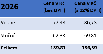 Od 1. ledna 2026 se cena vodného a stočného v Ústeckém a Libereckém kraji zvýší na 156,59 Kč za 1 000 litrů pitné vody včetně odvedení a vyčištění odpadních vod. Celková částka se skládá z vodného 86,79 Kč a stočného 69,80 Kč (včetně DPH).