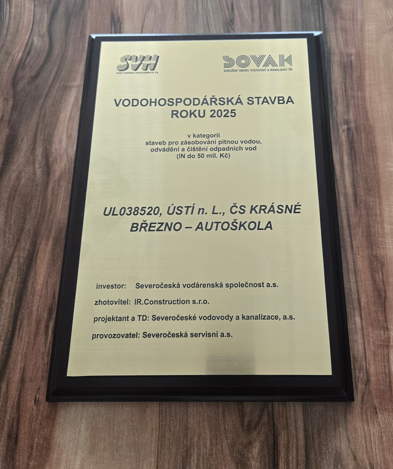 V soutěži Vodohospodářská stavba roku 2025 bylo oceněno osm staveb a tři mimořádná či zvláštní ocenění. Jedno z ocenění patří Severočeské vodárenské společnosti, která uspěla v kategorii staveb do 50 milionů Kč.