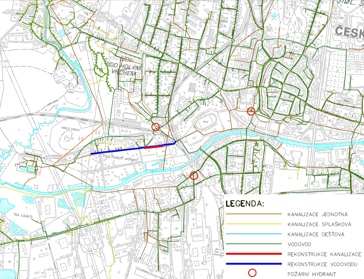 V rámci investiční akce SVS bude pro rekonstrukci vodovodu použito potrubí z vysokohustotního polyetylénu vnitřního průměru 150 mm v délce 273,6 metrů a menšího vnitřního průměru 100 mm v délce 374 metrů. K výměně potrubí dojde položením do otevřeného paženého výkopu ve stávající trase a niveletě. Pro rekonstrukci kanalizace bezvýkopovou metodou bude použito betonové potrubí vnitřního průměru 800 mm v celkové délce 145 metrů. Součástí stavby je přepojení všech stávajících 22 domovních vodovodních a 4 kanalizačních přípojek, výměna 4 hydrantů, rekonstrukce 4 revizních šachet a napojení na navazující řady/stoky. Závěrem dojde k obnově povrchů v rozsahu dotčeném stavbou.
